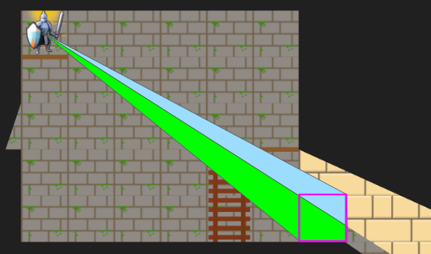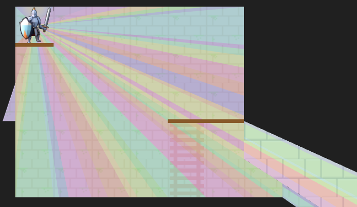 A debug view showing shadow cast segments from the vantage point of the actor.