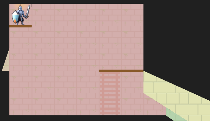 Above we can see an overlay of the resulting view nodes. There is a little sliver of a cell we can see for a passage off to the left, and there are the two passages, one with a portal, that we can see on the right. The platforms (little brown rectangles) do not block line of sight.