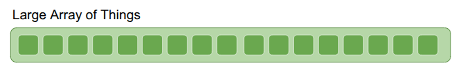 I also learned about the Large Array of Things from the Wookash podcast, in an episode with Anton Mikhailov. This data structure is basically and array of fat structs – rather than having a different collection for every entity type, you define _one_ struct that all entities, or Things, rather, use. The data structure is extremely simple – just an array of Things: