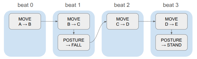 Events also contain beats. The game logic is discrete, and in order to have events run concurrently, we store them in the same beat: