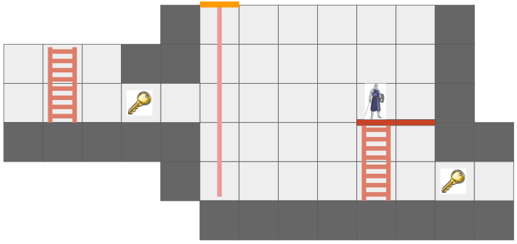 In order to support these features, the move action logic needs to know what the reachable cells are and what the shortest paths to them are. This is achieved by running Dijkstra’s algorithm from the actor’s initial state. The state space is not merely cell positions, but also includes the actor’s facing direction and their posture (standing, on ladder, etc.).